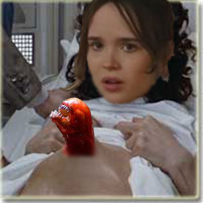 Oh, that irrepressible Juno! Who knows what sassy zingers she might have hurled had she been implanted with an alien spawn that bursts out of her stomach in the usual fashion? And dang, if the little one isn’t a spitting image of Michael Cera!