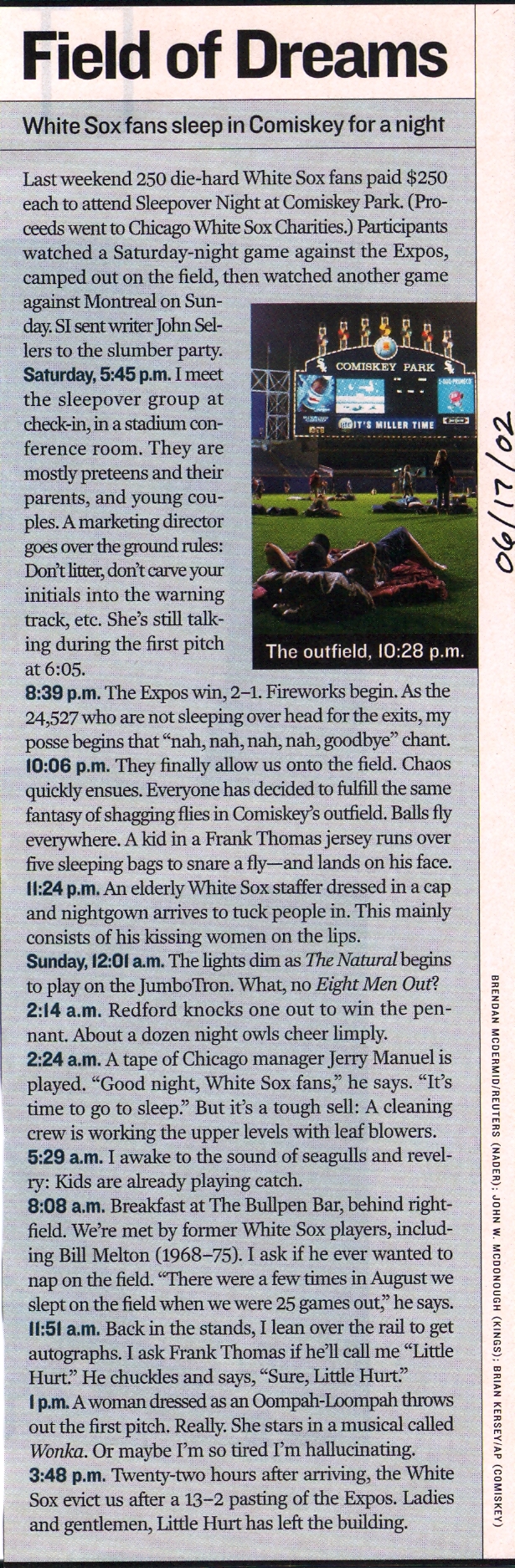 Last weekend 250 die-hard White Sox paid $250 each to attend Sleepover Night at Comiskey Park…SI sent writer John Sellers to the slumber party.